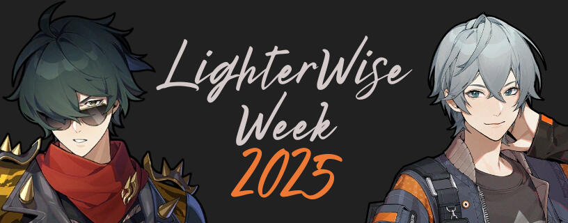 Welcome! This is the carrd for LighterWise Week 2025, an unofficial fan event to celebrate the romantic pairing of Lighter and Wise from Zenless Zone Zero. All entries for this event will use the hashtags #lighterwiseweek and #lighterwiseweek2025.